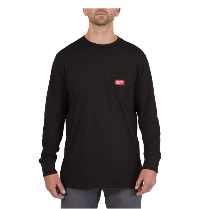 Milwaukee® T-Shirt, Model: 606, M, T-Shirt Top Style, Black Manufacturer Color, Black Color Family, Long Sleeve Length, Cotton/Polyester, Round Collar, 1 Pockets, 6 oz Fabric Weight, 38 to 40 in Fits to Chest Size