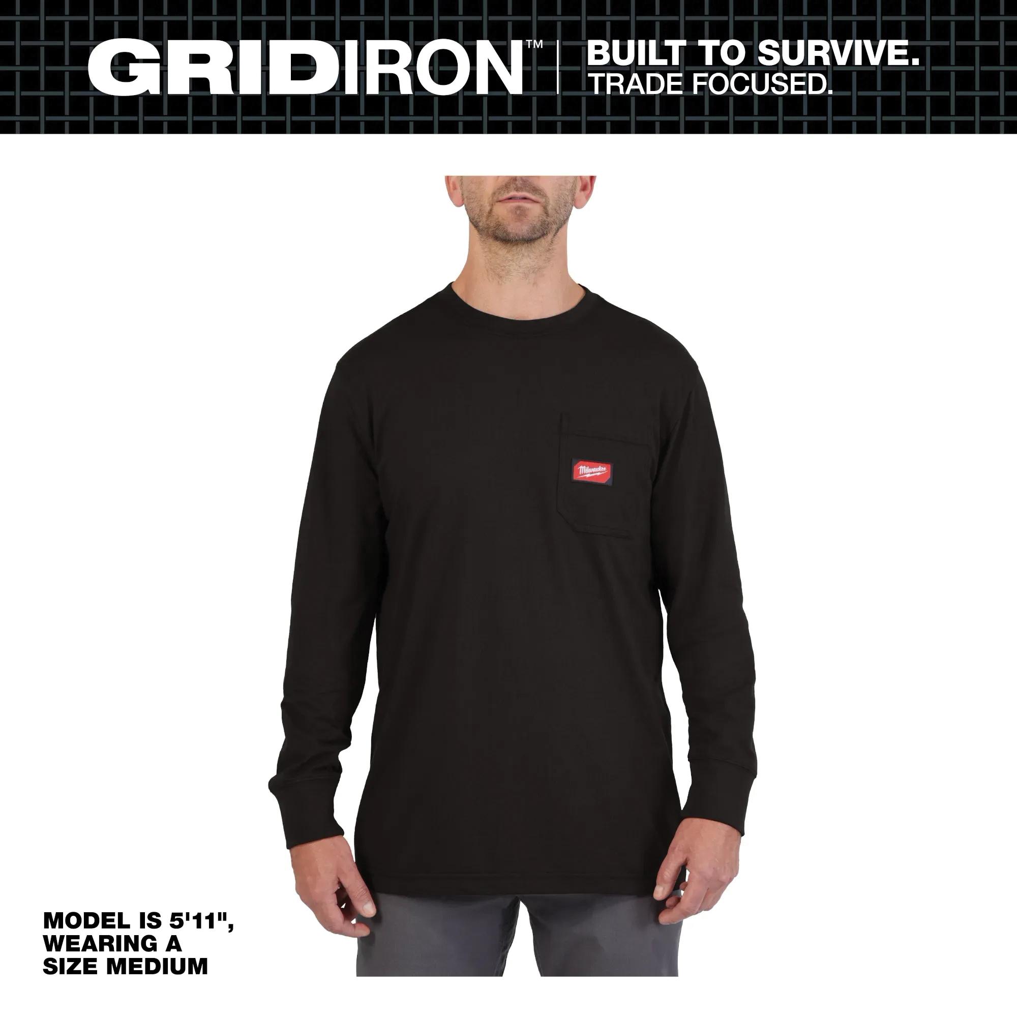 Part of the Milwaukee® GRIDIRON™ collection, our long sleeve pocket tee is built to survive. Our pocket tees are built from durable, reliable fabric for all day protection to outlast the job. This long sleeve t-shirt is engineered for broken-in comfort on day one and continues to get better over time. Designed with a relaxed fit for plenty of room to move. Our moisture wicking and anti-odor technologies make the heavy-duty pocket t-shirt a go to any time of year.