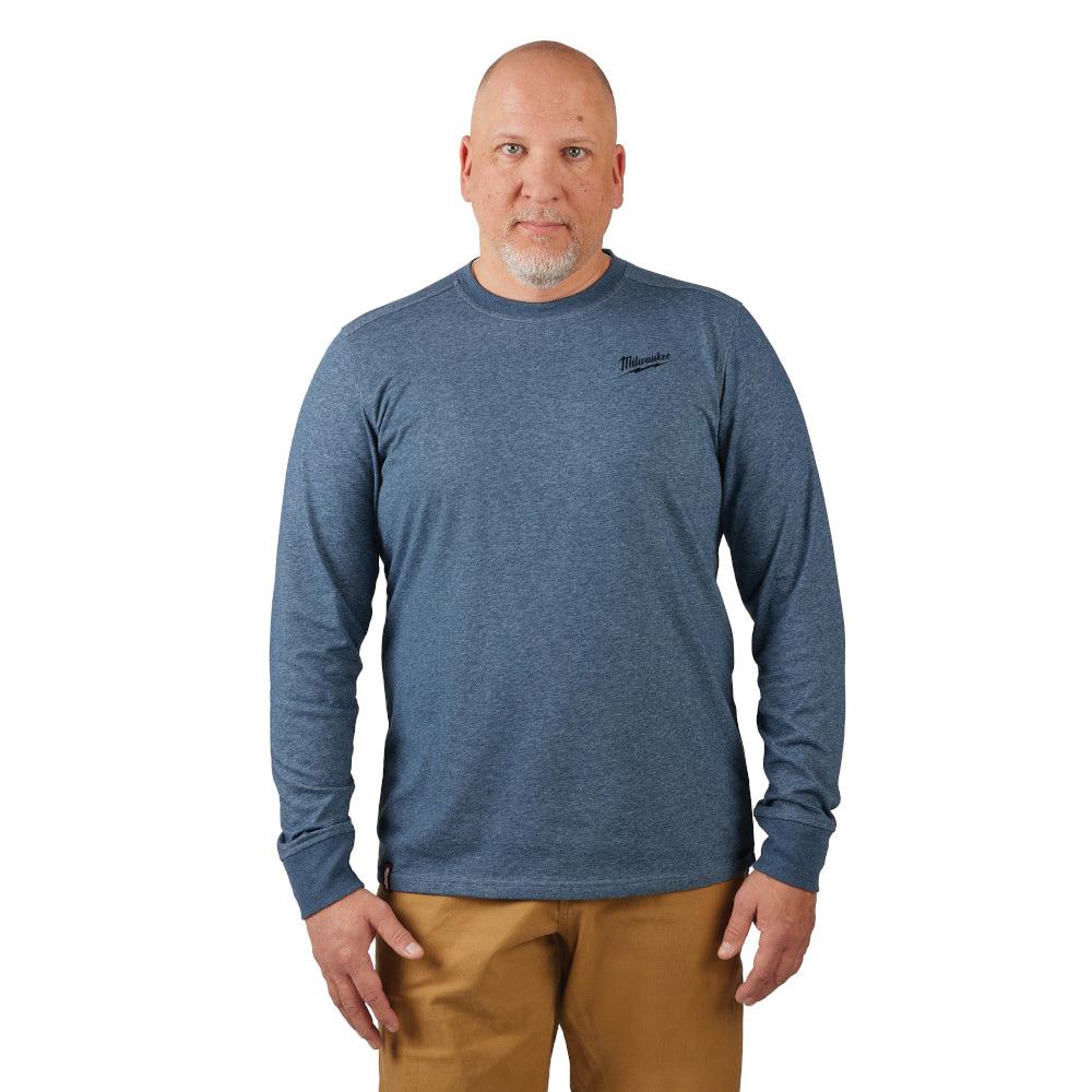 Milwaukee® Hybrid Work T-Shirt, Series: 604 Series, Men Gender, L, 42 to 44 in Fits to Chest, Blue Shirt Color, Cotton/Polyester Shirt Material, Long Sleeve, Drop Shoulder Seam, Additional Information: 36-1/2 to 38-1/2 in Waist