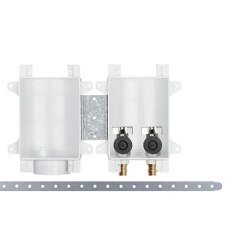 Sioux Chief OxBox™ Washing Machine Outlet Box With Frame, 696 Series, 1/2 in, PEX Connection, ABS, 200 deg F, 5-1/2 in H x 4 in W x 3-1/2 in D, Domestic/Import: Import, Additional Information: 7-1/4 in H x 11-1/2 in W Frame Size, 150 psig Pressure Rating