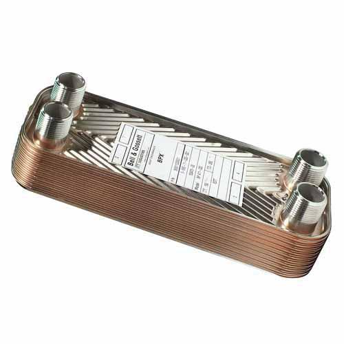 Bell & Gossett Heat Exchanger, Model: BP411-20MT, 350000 Btu/hr, 20 Plates, 1 in, MNPT, 435 psi, 316L Stainless Steel, Copper Braze-Plated, -310 to 450 deg F, 12-1/5 in L x 5-2/5 in W x 3-7/25 in D