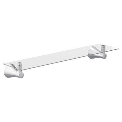 Moen® Vanity Shelf, Flara Collection, 21 in Shelf Width, 5.19 in Shelf Depth, 3 in Shelf Height, Glass Shelf, Zinc Frame, Chrome Frame, 21 in Overall Width, 3 in Overall Height, 5.19 in Overall Depth, Domestic/Import: Import