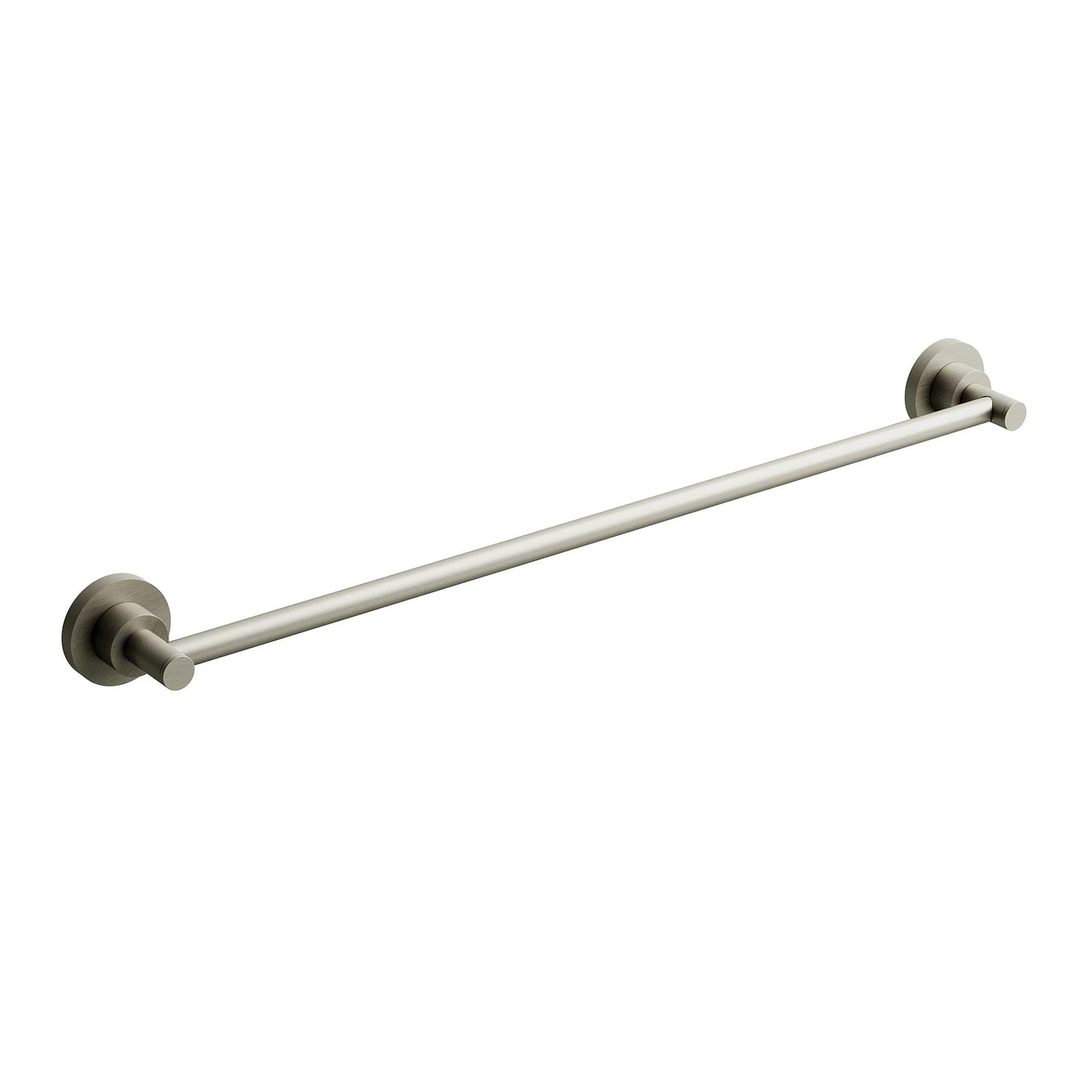 Riobel® Towel Bar, Star Collection, Theme/Style: Transitional, Straight Bar, 1 Bars, Zinc, Finish: Brushed Nickel, Wall Mounting, 23-5/8 in Center-to-Center Distance, 24 in Bar Length, 2-3/8 in Base, 26 in Overall Length, 2-3/8 in Overall Height, 2-5/8 in Projection