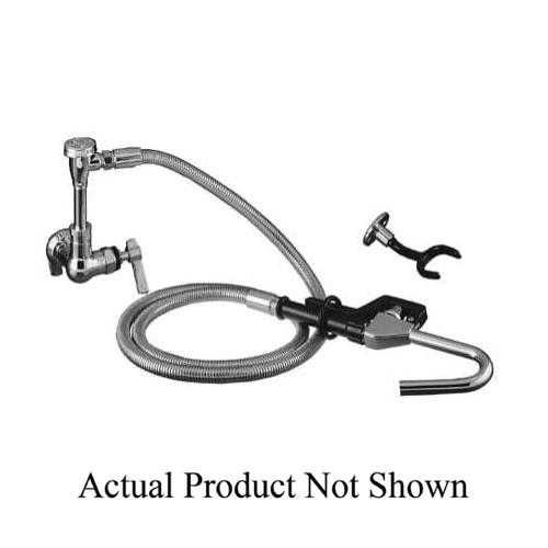 Faucet body to be constructed of polished chrome-plated brass with lever handles. Valves to be 1/4-turn with integral check valve to prevent crossflow and back-flow. Hose to be 72 in flexible stainless steel with Kool Grip™ handle. Hose to have Santoprene® reinforced inner hose. Hold open ring and hose wall hook to be included.