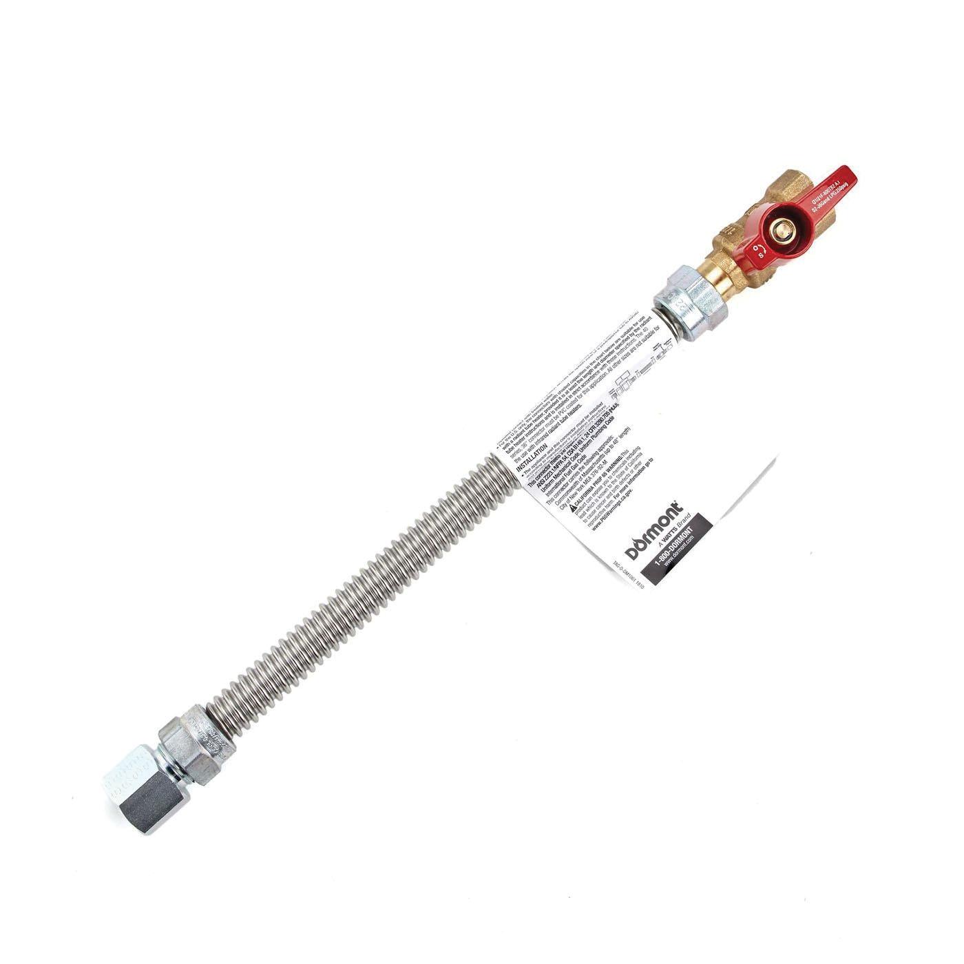This 1/2 in OD, 3/8 in ID, durable, corrosion-resistant stainless steel gas connector is configured with 1/2 x 1/2 in FIP ball valve. Designed with safety in mind, this CSA approved gas connector is commonly used for the installation of home appliances such as gas dryers and water heaters.