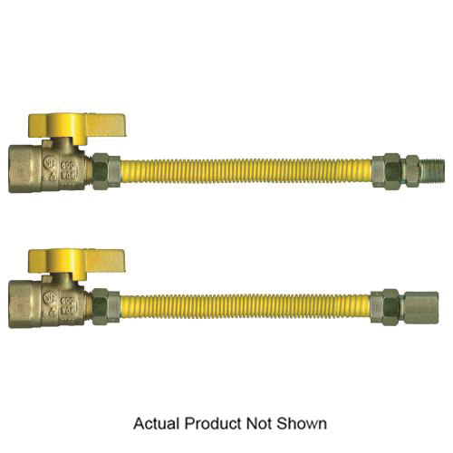 Fairview Flexible Stationary Gas Appliance Connector With Valve, ACS Series, FPT x MPT Connection, 1/2 in Fitting, 106000 Btu/hr, 48 in Length, 1/2 in Inside Diameter, 5/8 in Outside Diameter, Stainless Steel, Yellow, Domestic/Import: Domestic