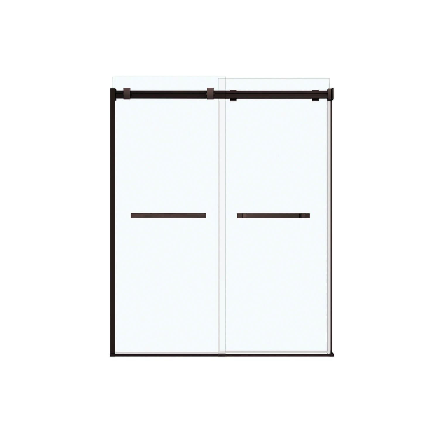 MAAX® Square Alcove Shower Door, Duel Collection, Sliding Door, 56 to 58-1/2 in Door Width, 74 in Door Height, 24-1/2 to 27-1/2 in Opening Width, Frameless Frame, Dark Bronze Frame, Tempered Glass, Clear Glass, 8 mm Glass Thickness