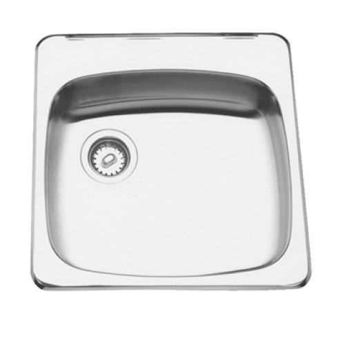 Single compartment self-rimming top-mount sink with faucet ledge. 20 ga, CNS 18/8 302 stainless steel. Exposed surfaces are 4 satin finished. Undercoated to reduce condensation and resonance. Includes waste fitting, factory applied rim seal, cutout template and factory installed EZ TORQUE™ fasteners. Left rear waste location.