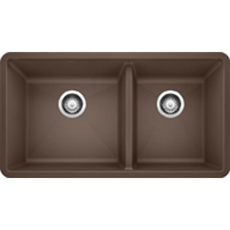 BLANCO Kitchen Sink, Precis U 1-3/4 Collection, Center, Rear Drain Location, 3-1/2 in Drain, Silgranit, Cafe, 2 Bowls, Rectangular Shape, 16 in L x 13 in W x 9-1/2 in D Sink Bowl Size (Right), Sink Bowl Size (Single or Left): 16 in L x 17 in W x 9-1/2 in D, 36 in Minimum Cabinet, 18 in Length, 33 in Width, 9-1/2 in Height