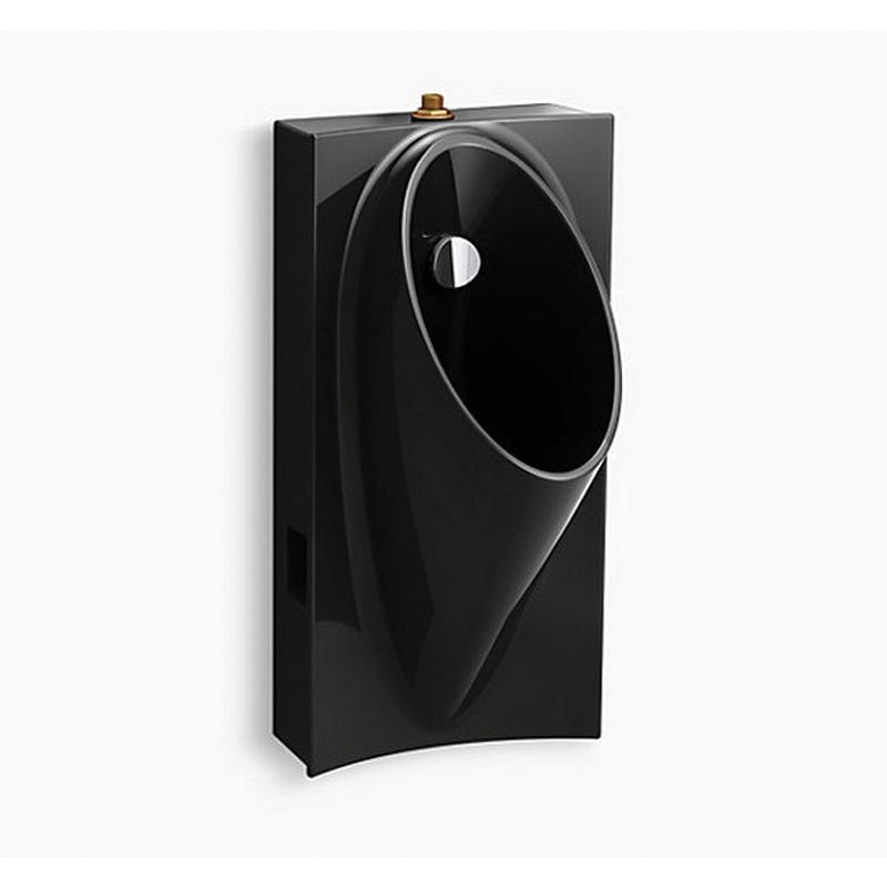Kohler® Hybrid High-Efficiency Urinal, Steward® Collection, Theme/Style: Modern, 0.125 gpf Flush Rate, Top Spud Location, 17-3/4 in Rough-In, 3/4 in Inlet Spud, 2 in Outlet Tap, Wall Mounting, Vitreous China, Finish: Black, 15 in Length, 15-5/8 in Width, 29-5/8 in Height