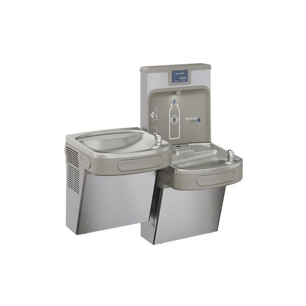 The Elkay ezH2O® Bottle Filling Station delivers a clean quick water bottle fill and enhances sustainability by minimizing our dependency on disposable plastic bottles. Complete cooler and bottle filling station in a consolidated space saving ADA compliant design. NEW Versatile Bi-Level cooler design allows for standard cooler installation of high-left/low-right or the alternate reverse cooler installation.