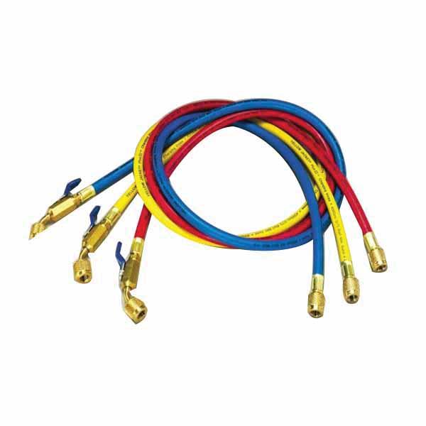 Yellow Jacket® PLUS II™ Refrigerant Charging Hose Set, 800 psi, -20 to 180 deg F, 1/4 in Connection, 60 in Length, Blue/Red/Yellow, Additional Information: 4000 psi Burst Pressure Rating