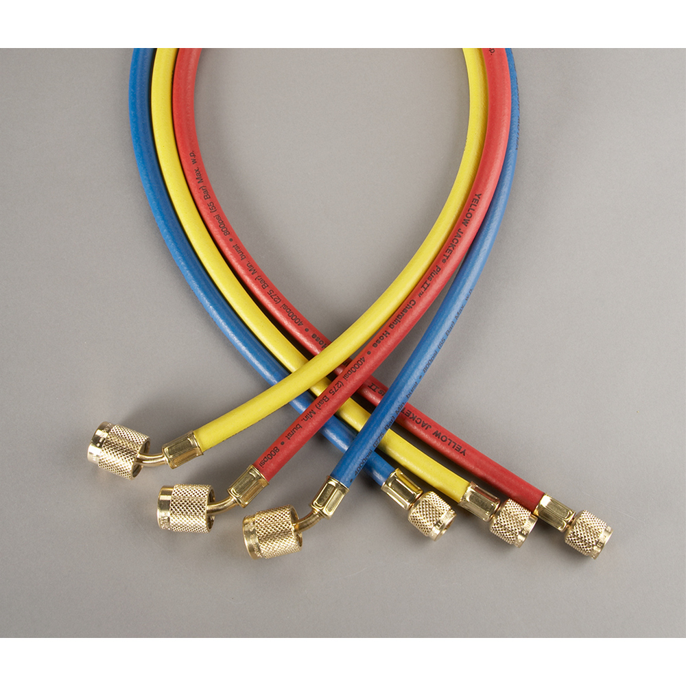 Yellow Jacket® PLUS II™ Hose Pack, 1/4 in Nominal, 800 psi, -20 to 180 deg F, 6 in Bend Radius, 36 in, 60 in Length, 3 Hoses, R-410A Refrigerant, Blue/Red/Yellow, Additional Information: 4000 psi Burst Pressure Rating