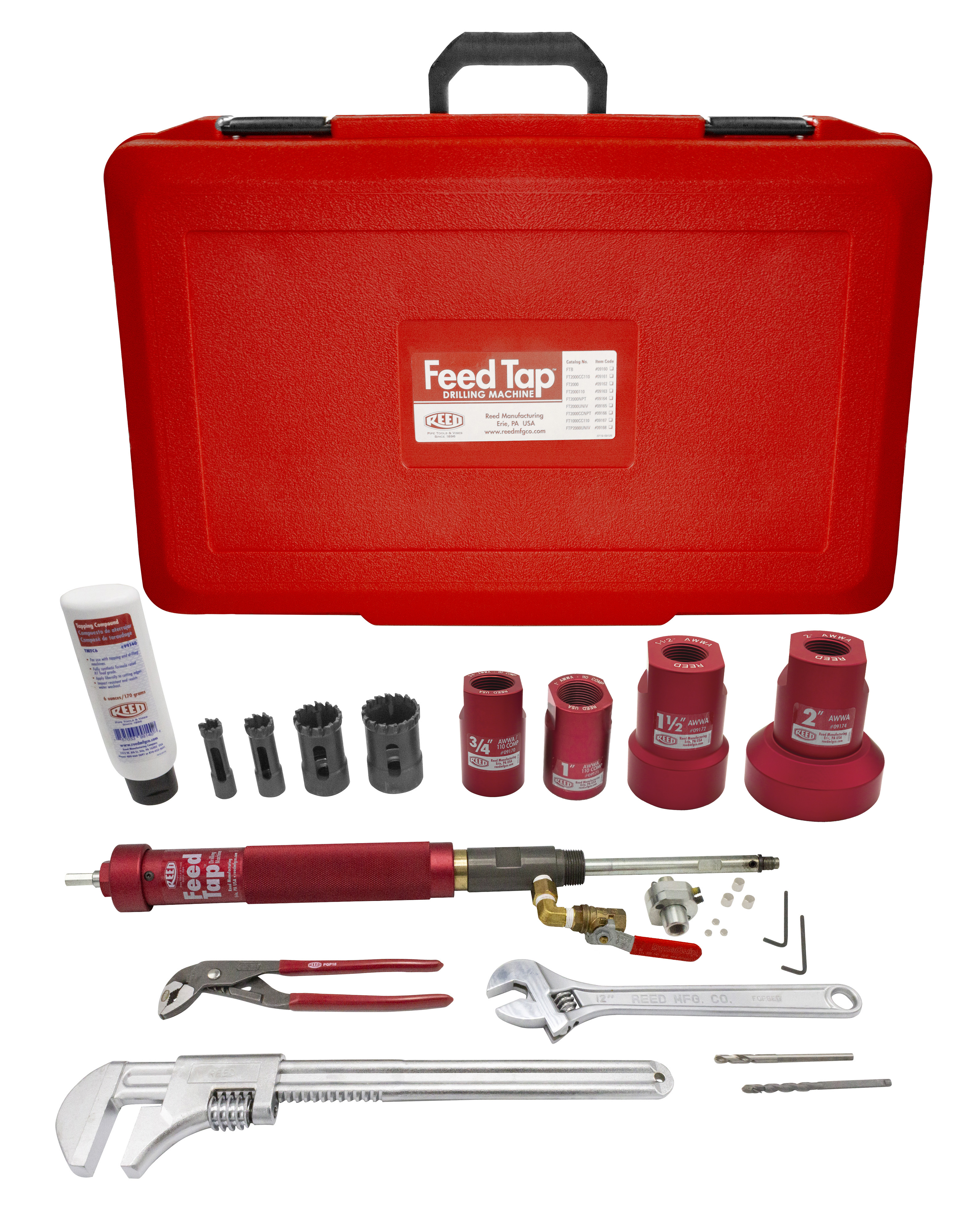 REED Feed Tap™ Drilling Machine Kit, 3/4 to 2 in Maximum Drill Depth, 26 in Overall Length, 19 in Overall Width, 9 in Overall Depth, Additional Information: 33 lb Weight